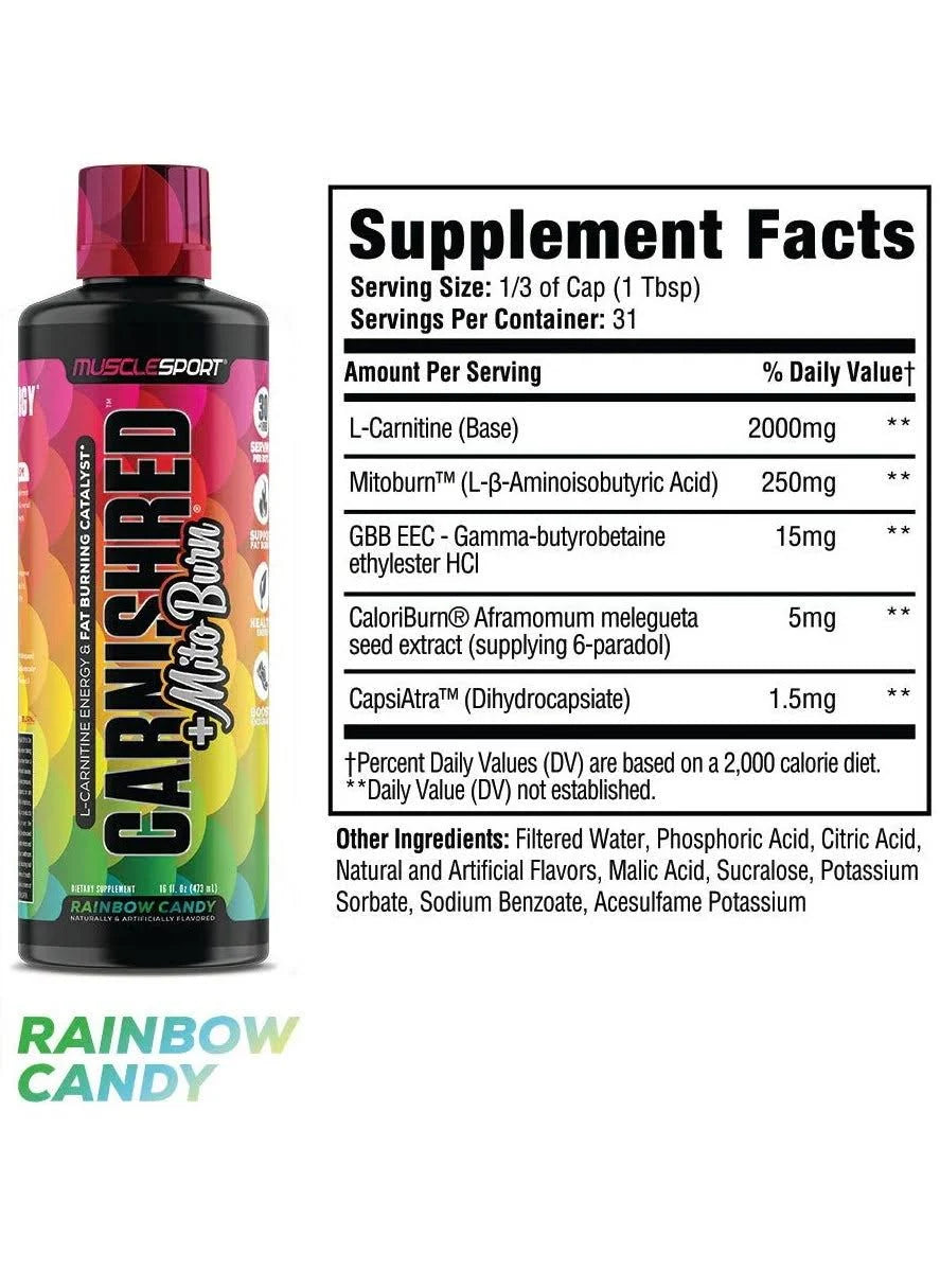 Unleash your body's full fat-burning potential with MuscleSport CarniShred + Mitoburn – a next-level thermogenic formula designed to support weight loss, increase energy, and enhance endurance without stimulants. Powered by 4 forms of L-Carnitine and the cutting-edge ingredient Mitoburn®, this advanced liquid formula helps your body convert fat into fuel while preserving lean muscle. Perfect for fasted cardio, intense training, or daily metabolic support, CarniShred delivers results you can feel – and see.